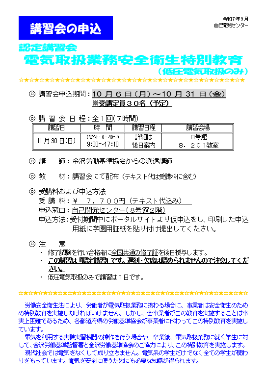 - 2025.10.14 資格受付案内・講座受付案内を更新しました