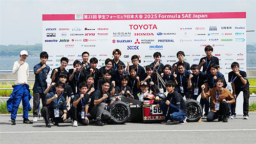 今年度からは、静的審査が現地開催に戻り、ICVクラスとEVクラスが分かれた最初の大会となりました。学生フォーミュラ日本大会は、学生が主体となって小型フォーミュラスタイルの車両を用いたビジネスを想定し、車両の企画・設計・製作を行い、その成果を実走行によって検証する工学系教育プログラムです。大会の審査は「静的審査」と「動的審査」に大別され、静的審査では、車両の設計内容やコスト、販売戦略などを総合的に評価し、動的審査では、加速性能、旋回性能、耐久性といった車両の走行性能が評価されます。