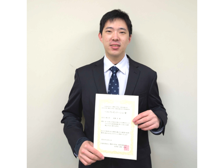 福原優さん(加藤秀治研究室)が精密工学会北陸信越支部 学術講演会「ベストプレゼンテーション賞」を受賞 -