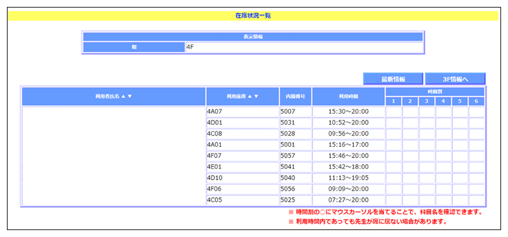 また、やつかほリサーチキャンパスに研究室を持つ教員は、21号館教員控室に在室している場合があります。在席状況は学生ポータル下部リンク集「21号館教員控室 在席状況」から確認できます。