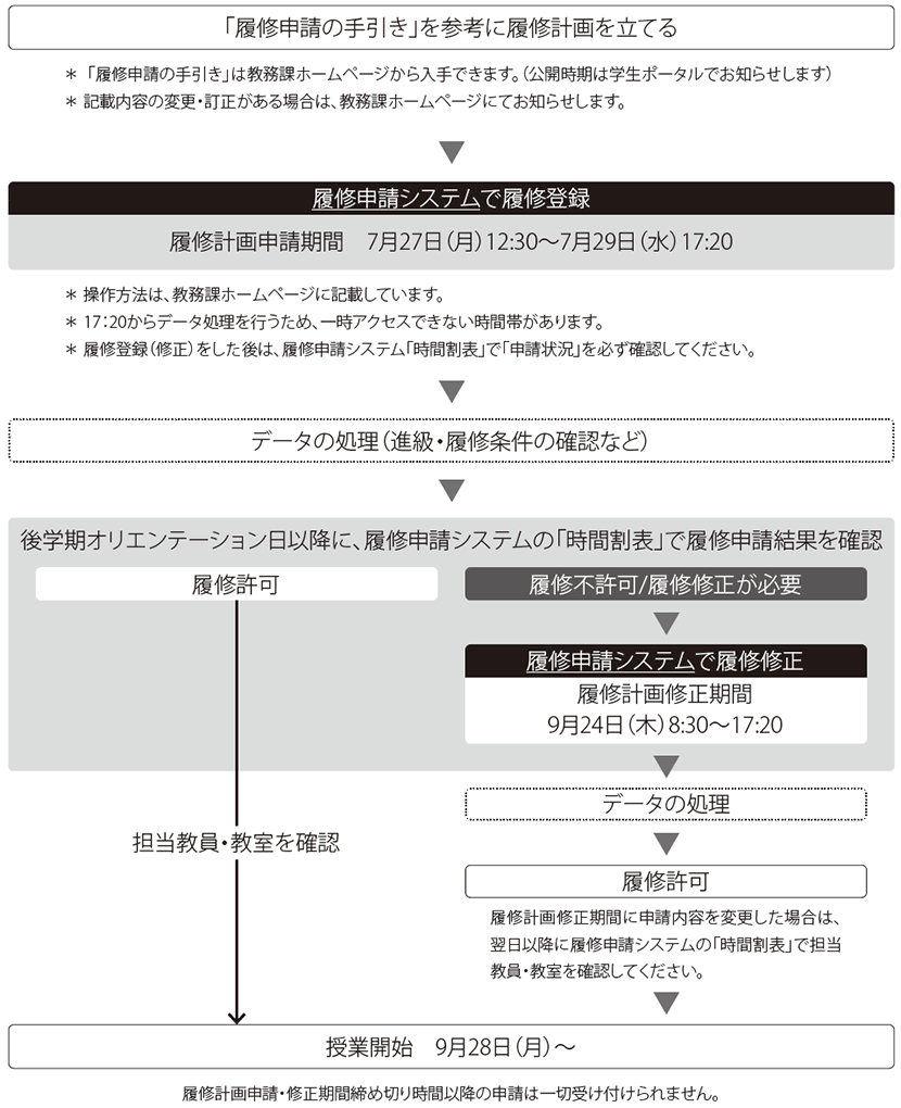 2026年度 後学期の履修計画申請は、下記の日程で行います。