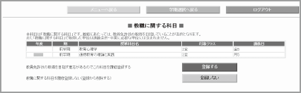 ● 「登録しない」をクリックすると、それらの科目を除いて登録されます。