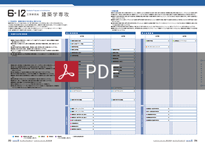 - 広範な領域の知識の修得と専門分野の研究を同時に行うことにより、建築学の全体像が理解できるバランスの取れたスペシャリストとして、さまざまな視点から問題解決に適切に対処できる総合的能力を養うことができる。
