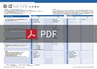 ライフサイエンス、医療、バイオテクノロジーおよびナノテクノロジーを基盤とする分野においては、個人の多様性、年齢層の拡がり、価値観の拡がりなどに対応した、従来の工学とは異なる基準に基づく製品やサービスの開発が求められている。さらには、これらの製品やサービスは、我が国国内のみを対象とするものではなく、広く地球規模において複数の国や地域をその対象とするものである。このような背景の下、ライフサイエンス、医療、バイオテクノロジーおよびナノテクノロジーを基盤とする応用バイオおよび応用化学の分野において、従来の工学の枠を超えた発想を持ち、新規な産業を立ち上げていくことができる技術者の育成が求められている。バイオ・化学専攻では、応用バイオ学および応用化学の基盤を修得した上で、深く自らの研究を探究することにより基礎学力および応用・実践力をバランス良く身につけ、従来の工学の枠組を超えて、広く社会において活躍する応用バイオあるいは応用化学技術者の育成を目標とする。