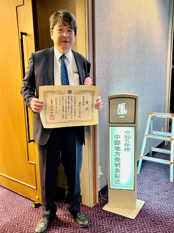 令和5年度中部地方発明表彰授賞式が令和5年11月17日(金)にANAクラウンプラザホテル金沢で開催され、バイオ・化学部応用化学科の露本伊佐男教授の発明が発明奨励賞を受賞しました。