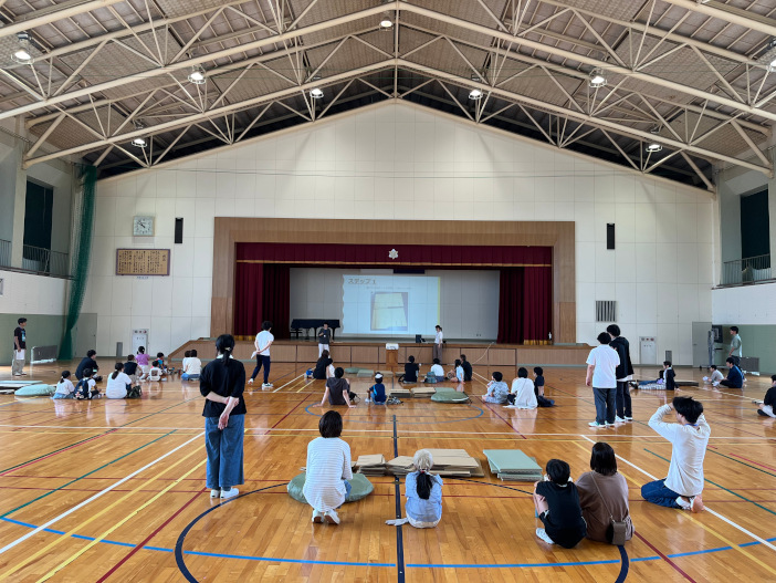 当日は小学1年生から5年生までの児童37名とその保護者、そしてSoRAからはプロジェクトメンバー15名が参加し、防災クイズや避難所設営体験を行いました。