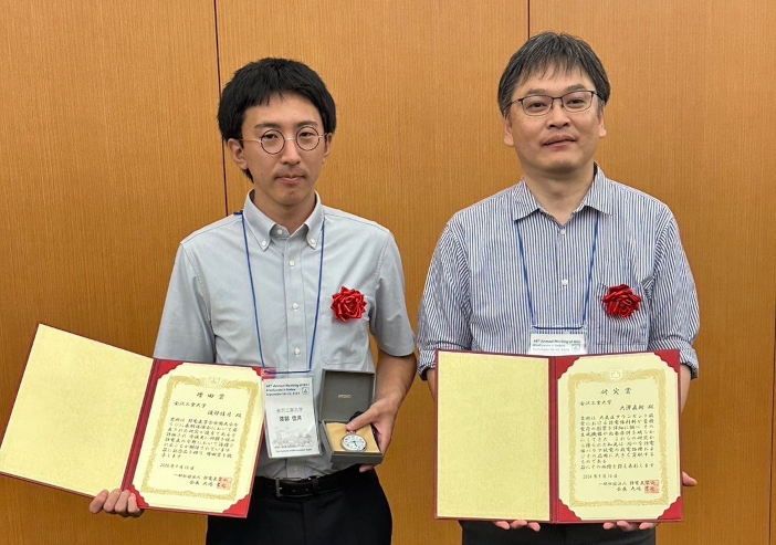 2024年9月10日~11日に西日本総合展示場(福岡県北九州市)で開催された「第48回静電気学会全国大会」で、工学研究科電気電子工学専攻博士3年・渡部佳月さん(大澤直樹研究室)が増田賞を、電気エネルギーシステム工学科・大澤直樹教授が研究賞を受賞しました。