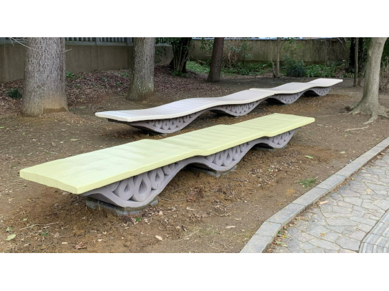 【友禅流しがモチーフ。温室効果ガス削減にも貢献】 セメント系3Dプリンター × CO2で固まるコンクリートで製作したベンチを 金沢市外濠公園二号地に設置。[報道関係者を対象に現地でレクチャーを実施します] 3月26日(火)10時から11時30分まで