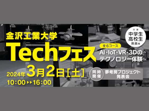 【お申し込みは3月2日当日まで】[高校生・中学校教員・高等学校教員対象]AI・IoT・VR・3Dのテクノロジーが体験できる。 金沢工業大学「Techフェス」 3月2日(土)開催