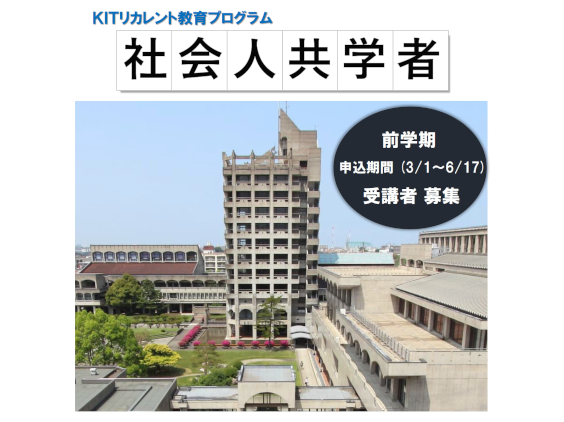 社会人の学び直し「KITリカレント教育プログラム」の夏期集中講義の募集を 令和6年5月27日より開始。 AIやIoTを基礎から応用まで学ぶ「情報技術教育プログラム」を開講
