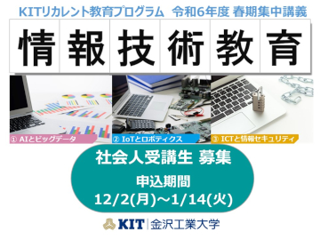 社会人の学び直し「KITリカレント教育プログラム」の春期集中講義の募集を 令和6年12月2日より開始。AIやIoTを基礎から応用まで学ぶ「情報技術教育プログラム」を開講