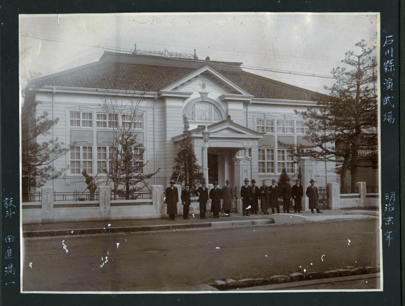 大正2年(1913)11月、大日本武徳会石川県支部の演武場が広坂通に落成、記念演武大会が開かれた。柔術道場と撃剣・薙刀道場の2区画があり,また弓術のために十七間の射場が設けられた。演武大会の種目は、撃剣,柔術,居合,薙刀,弓術であった。大日本武徳会は、明治28年(1895)に結成された全国規模の武術団体で、戦前の武術・武道会の総本山として君臨した。第二次世界大戦終戦後、GHQに資産没収の処分を受け、解散した。