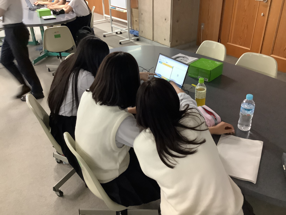 このように、自分のアイデアを即座に試せるのがプログラミング実習の魅力です。教室のあちこちで「動いた!」「思った通りにできた!」と笑顔があふれ、時には「思った通りに動かない」という失敗も学びに変わっていました。コードを修正し、再実行して改善する過程そのものが、工学的な探究活動へとつながります。