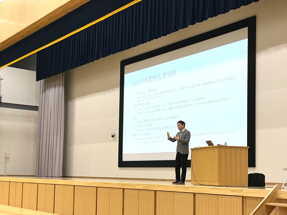 2025年12月17日(水)午前、山形市立商業高校の全校生徒840名を対象に、金沢工業大学 情報理工学部 知能情報システム学科の山本知仁教授による特別講義「高校での学びを加速する生成AIの活用法とデータサイエンスの活用法」が実施されました。