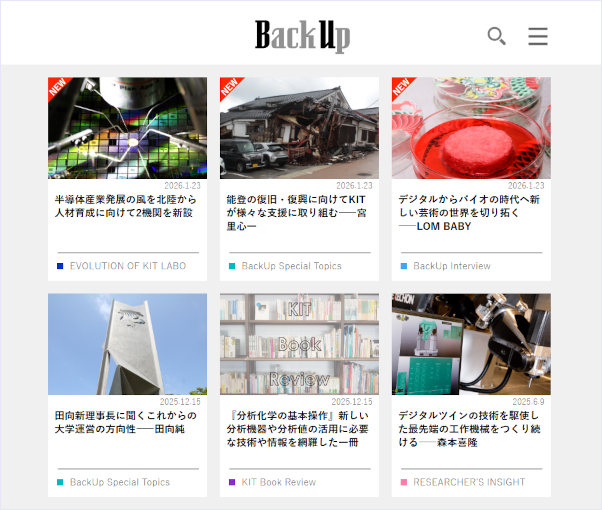 「BackUp」は学校法人金沢工業大学の卒業生向けオウンドメディアです。