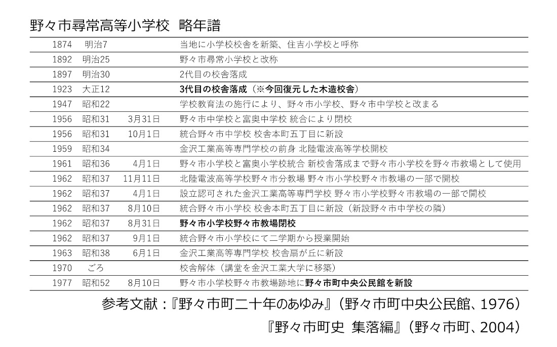 旧・野々市尋常高等小学校を学生が精巧に復元