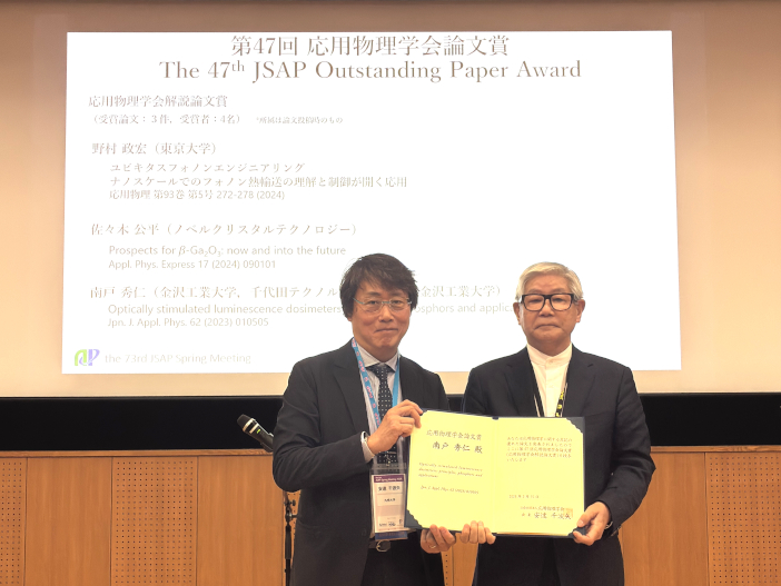 金沢工業大学の南戸秀仁教授・岡田豪准教授が応用物理学会「解説論文賞」を受賞