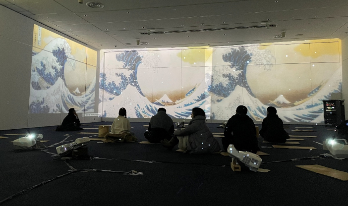 ・世界的アートの再構成: 「川崎市岡本太郎美術館」や「すみだ北斎美術館」を学生自ら取材し、名作をデジタル空間に再構築。また、GMOインターネットグループの熊谷正寿代表の協力を得て、東京・渋谷の「GMOデジタル美術館」で展示中のバンクシー作品を本イベント用に特別編成しました。