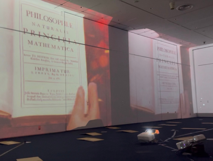 松林研究室の学生が地元デジタルクリエーターの葭田護氏(YDP代表)と企画、製作した作品。通常は非公開となっている金沢工業大学が所蔵する人類の主要な科学的発見、技術的発明の原典初版の貴重なコレクションの紹介。