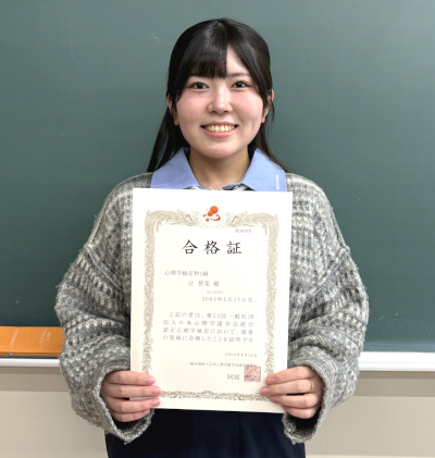 心理科学科4年・辻智菜さんが「心理学検定特1級」に合格
