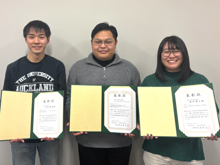 2026/3/24 NEW環境土木工学科、環境土木工学専攻の学生3名が「令和7年度 土木学会中部支部研究発表会」で「優秀講演者賞」を受賞
