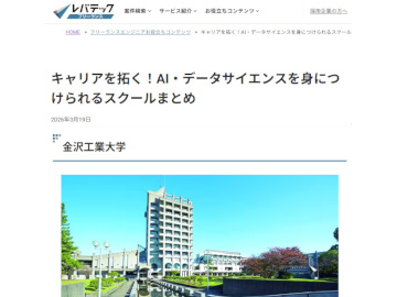 2026/3/24 NEW金沢工業大学が、フリーランスエンジニア向け情報サイト「レバテックフリーランス」に掲載