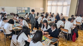 当日は4クラス同時に開催し、ルールなどの説明はオンラインで各教室をつなぎながら行いました。ゲーム体験は、各クラスで4名1グループとなり、協力しながら進めました。