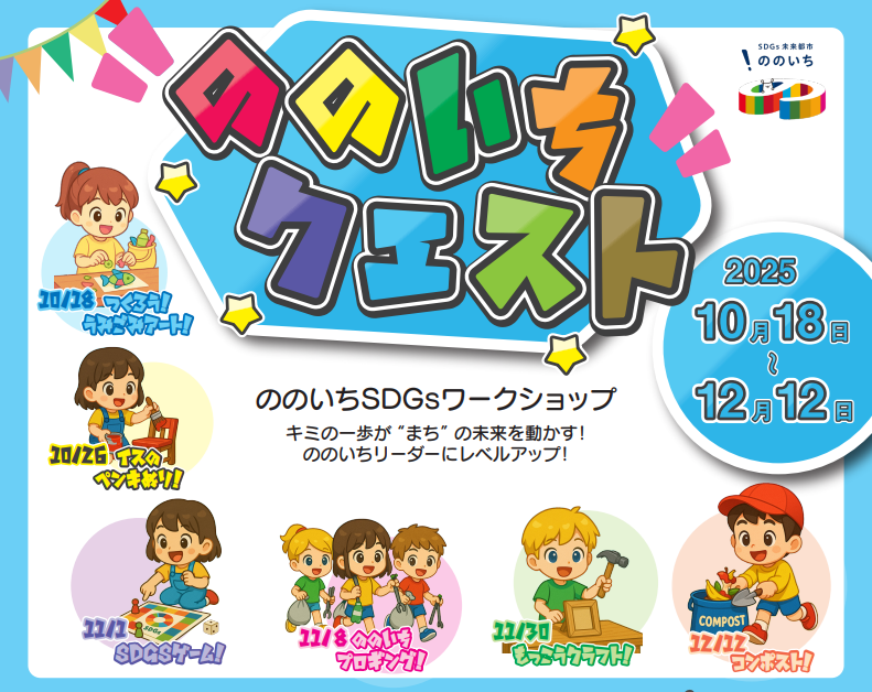 野々市市主催の「ののいちSDGsワークショップ ののいちクエスト2025」が開催されます。本イベントは、自分の好きなことをきっかけにSDGsに関心を持ってもらうためのイベントとして10月から12月にかけて6つのイベントが開催されます。興味のあるテーマのイベントにぜひご参加ください。
