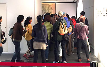 監修者=竺覚暁(ちく かくぎょう)金沢工業大学教授が、本展のみどころや書物にまつわるエピソードなどを展覧会場でわかりやすく解説しました。連日大勢の来場者がご参加くださり、参加者はのべ534名と大好評でした。