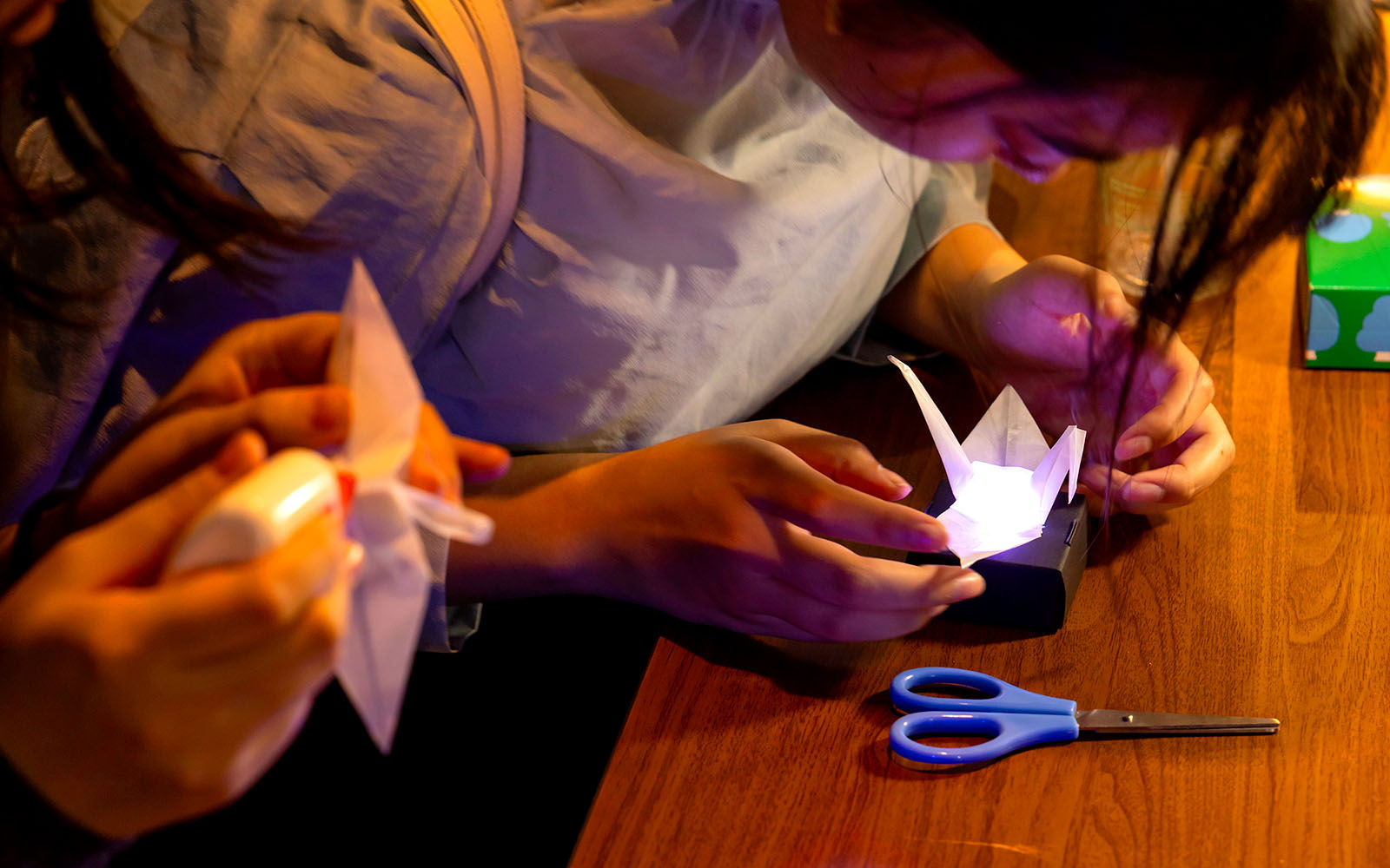 建築学科土田義郎研究室が開催した小さなあかりづくりのワークショップでは、昨年に引き続き能登半島地震復興支援の募金活動をさせていただきました。