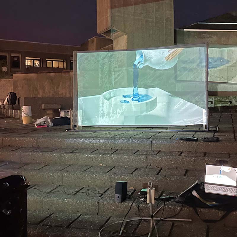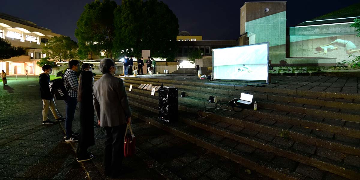 アミッドスクリーンの透過を利用して建物の壁面にも画像を投影しました。